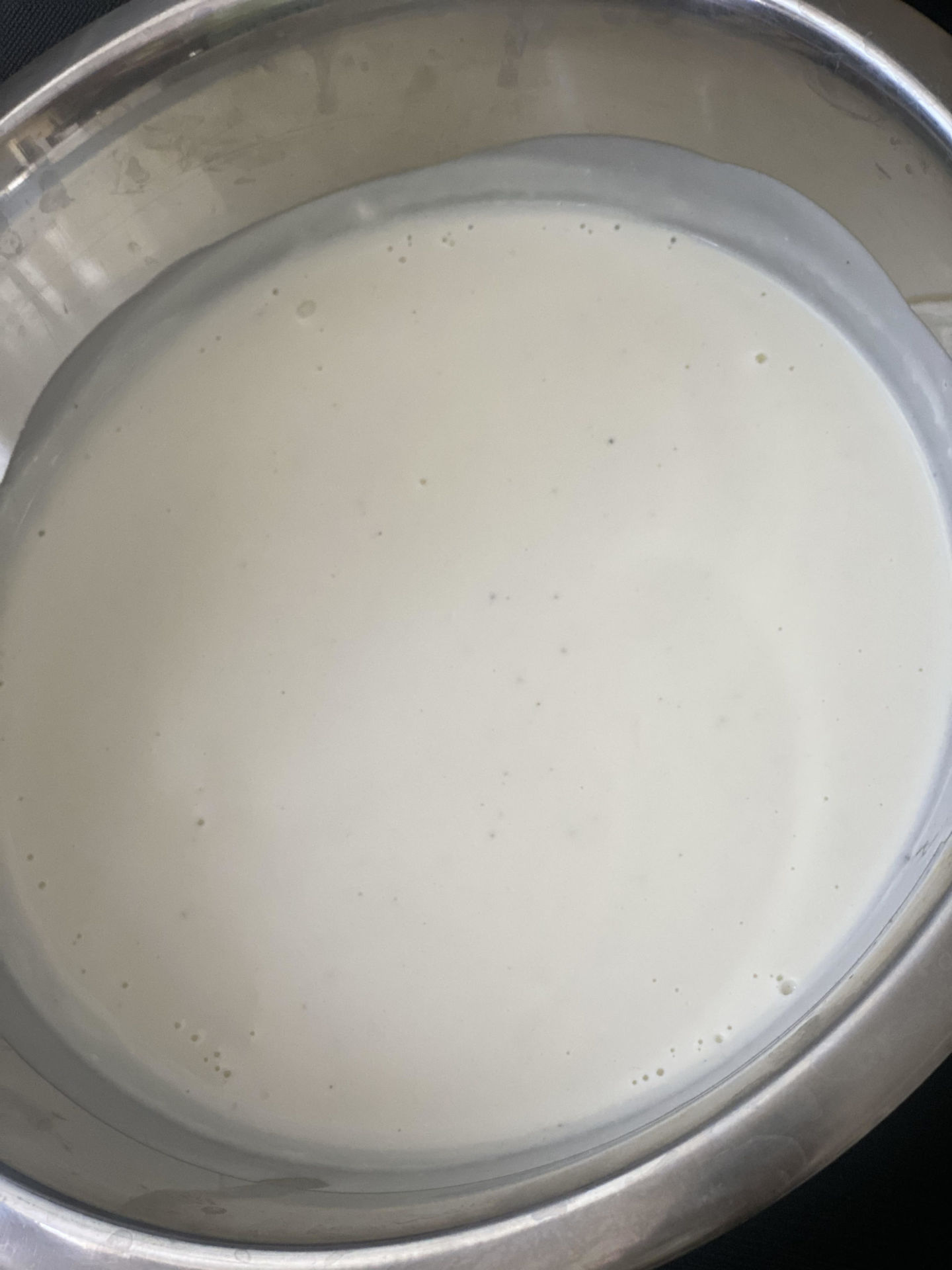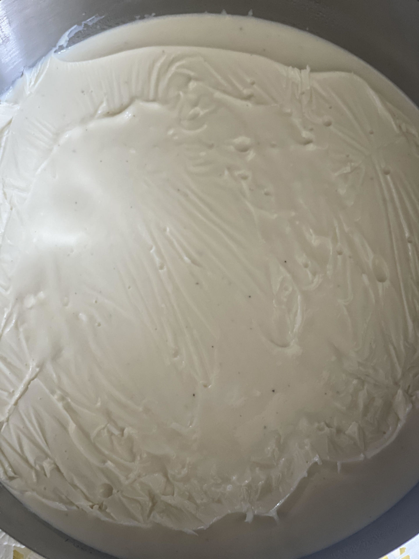 Προσθέτουμε όλα τα υλικά στο μίξερ και όταν γίνουν μια ρευστή κρέμα τα μεταφέρουμε σε κατσαρολάκι.