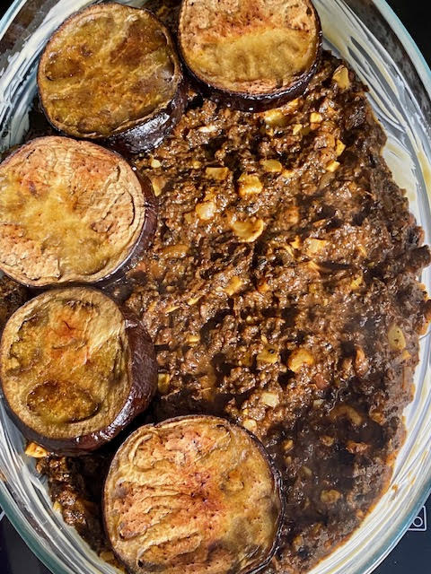 Όταν είναι έτοιμος ο κιμάς αφήνουμε λίγο στην άκρη να κρυώσει και ξεκινάμε το "στήσιμο" του μουσακά.