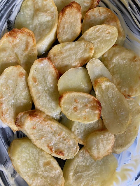- Όπως διαβάσατε εγώ επέλεξα να ψήσω τις μελιτζάνες και τις πατάτες, εσείς αν προτιμάτε τηγανίστε τα λαχανικά.