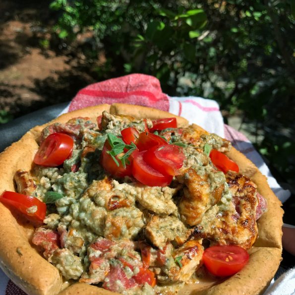 Γαρνίρουμε με τα υπόλοιπα φρέσκα ντοματίνια και με φρέσκια ρίγανη.